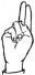На ћирилици написано БЕРИША ПЕЧАНИН састоји се из 13 слова [?]. Исписано ћириличном једноручном азбуком за глувонеме: